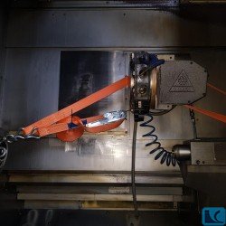The machine does not include a chuck or tools – the machine was originally purchased without these accessories. The G300 has X, Z, Y, C, SP, and driven tools. A bar feeder can be used, but the machine does not have one.